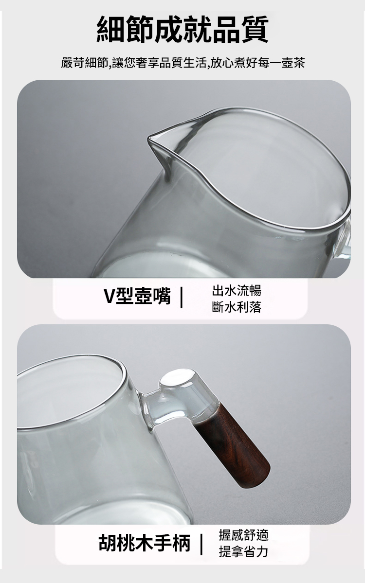 材質:高硼矽玻璃+胡桃木+不鏽鋼