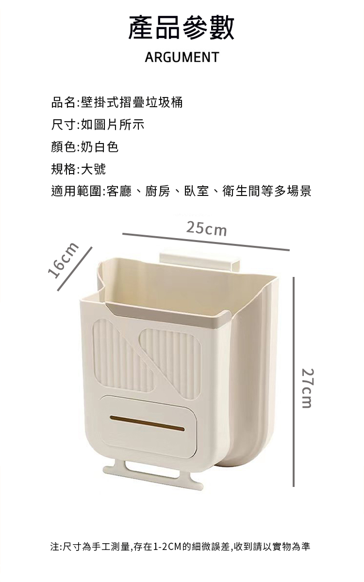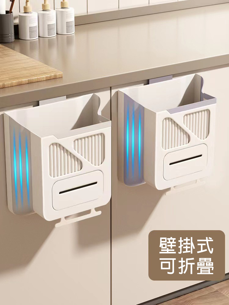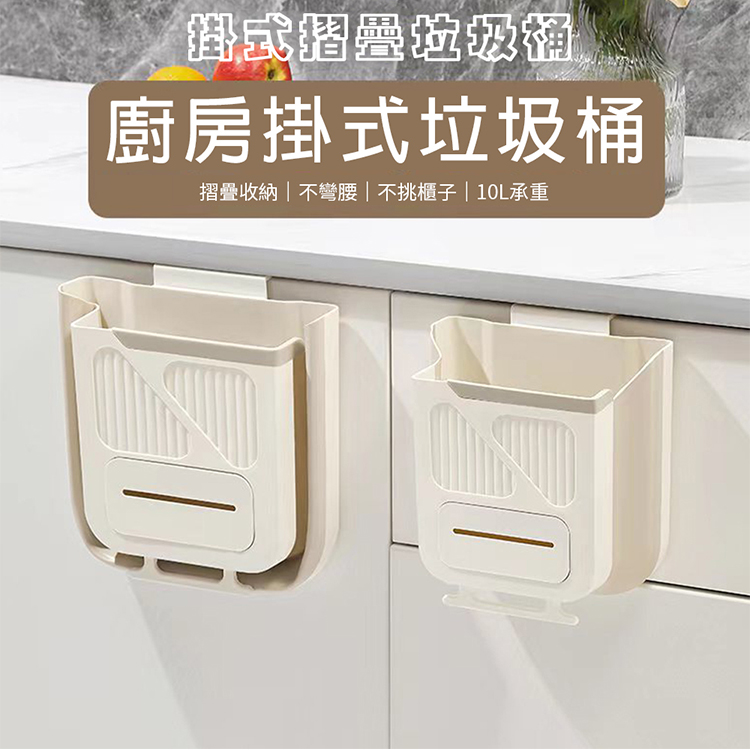 免打孔壁掛式多功能摺疊收納垃圾桶-10L奶油色(掛式櫥櫃垃圾桶)