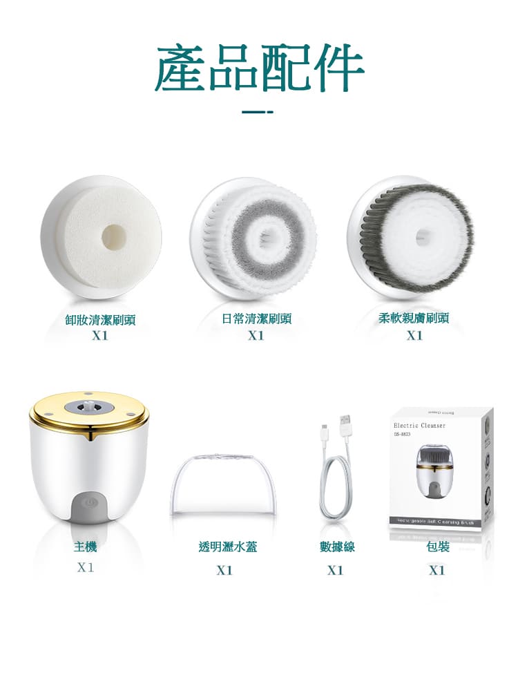 包裝內容物:本體x1(含兩個刷頭)、Type-C充電線x1、說明書x1、外盒x1